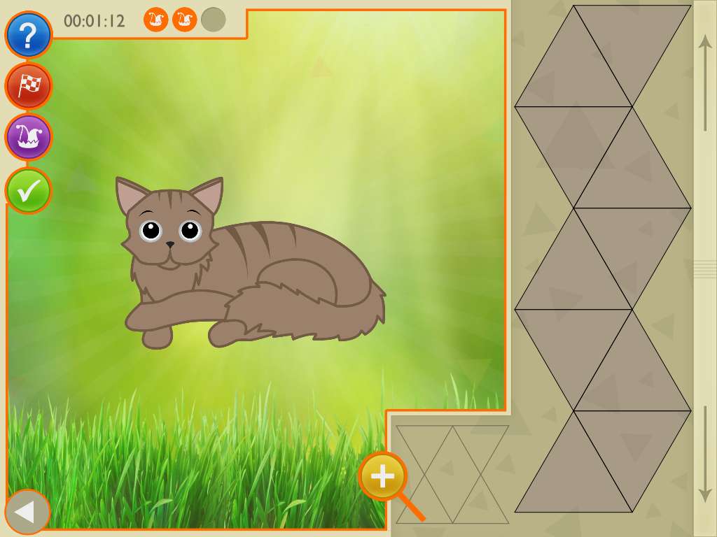 Las plaquetas juego triangulares son atraídos por el famoso principio de dominó en el terreno de juego que los dos lados adyacentes coincida con cada uno. Si una tarea se resuelve correctamente, crea un carácter que se utiliza para la revisión directa e independiente del rendimiento. Para las tareas correctamente resuelto el jugador recibe estrellas y se puede desbloquear mediante la recopilación de todas las estrellas de un juego de bonificación.