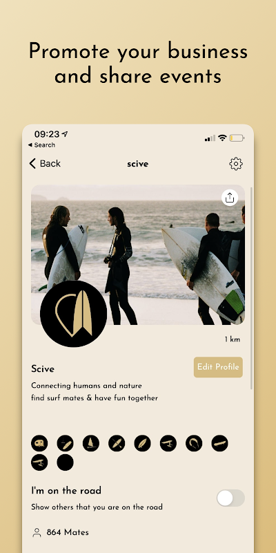 Scive es tu aplicación comunitaria para conectar con gente que comparte tu pasión por el surf, el kitesurf o cualquier otro deporte de tabla.