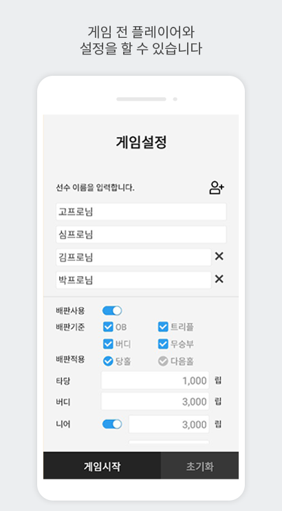 Aplicación esencial del golfista coreano: Bet Golf Scratch (Stroke) El juego calcula los puntos automáticamente de acuerdo con las condiciones dadas.