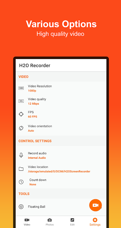 Grabar Pantalla & Grabador Pantalla - H2O Recorder brinda una gran experiencia a todas las personas, fácil de usar y editar.
