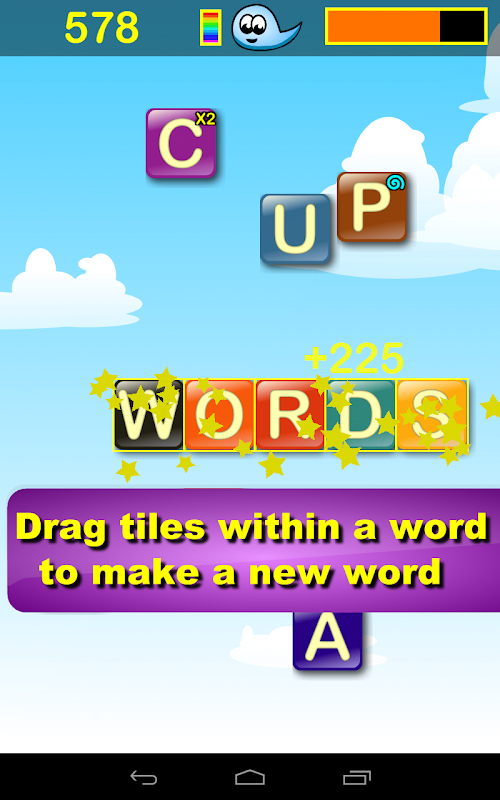 ¡Scribbous es el juego de palabras más rápido y divertido que jamás hayas jugado! ¿Qué hace que Scribbous sea tan rápido? Puedes mover las fichas de letras a cualquier lugar de la pantalla, incluso una encima de la otra... ¡Convierte "ESPADAS" en "PALABRAS" y "CUPULARES" en un abrir y cerrar de ojos! Si te quedas atascado, una criatura mágica llamada Scribbous está ahí para ayudarte.