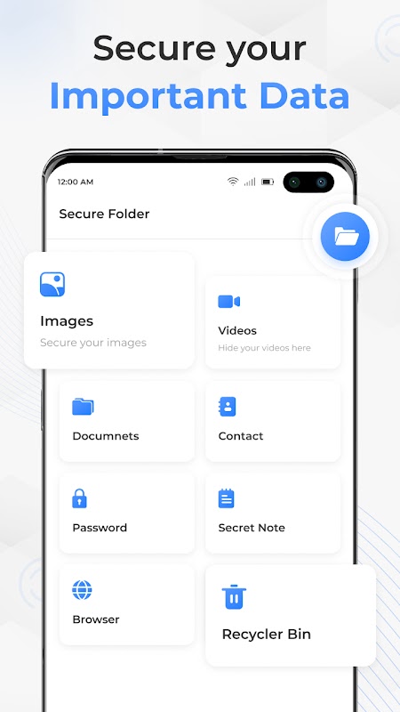 Carpeta segura, cargue archivos en la bóveda y mantenga los datos seguros en una carpeta secreta