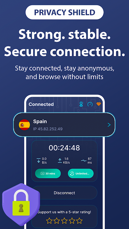 • Strict No-Logs Policy: Stay anonymous with a free VPN proxy and vpn super features that never track your data.