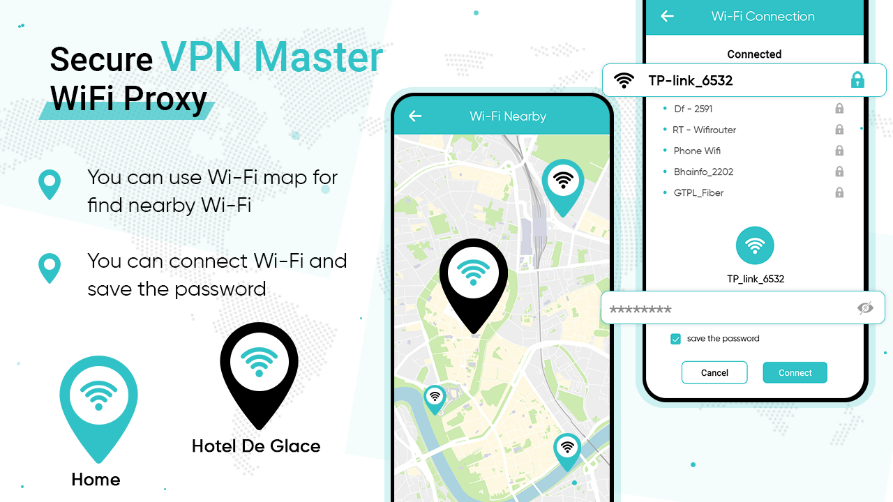 Esta aplicación Secure VPN Master: WiFi Proxy es el mejor servidor para proteger su dispositivo. Y puede usar de forma segura cualquier wifi con privacidad VPN.