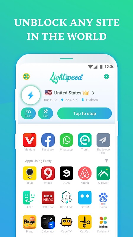 Lightspeed VPN, as the name suggests, is a lightning-fast app offering free and secure VPN proxy service.