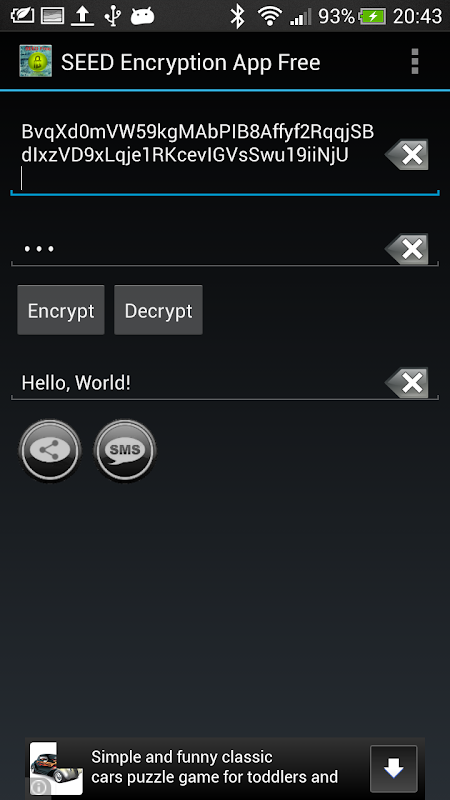 With this app you can encrypt or decrypt your text with cryptographically strong cipher SEED.