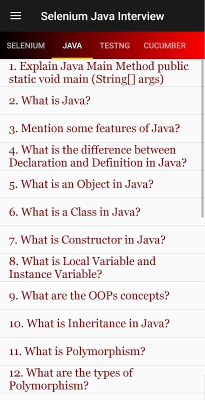 Información de Selenium Java Interview APK