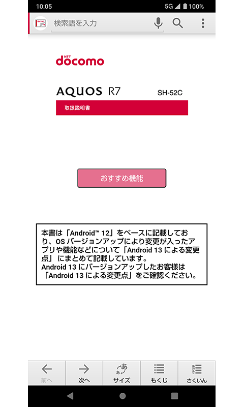Acerca del SH-52C 取扱説明書(Android13)