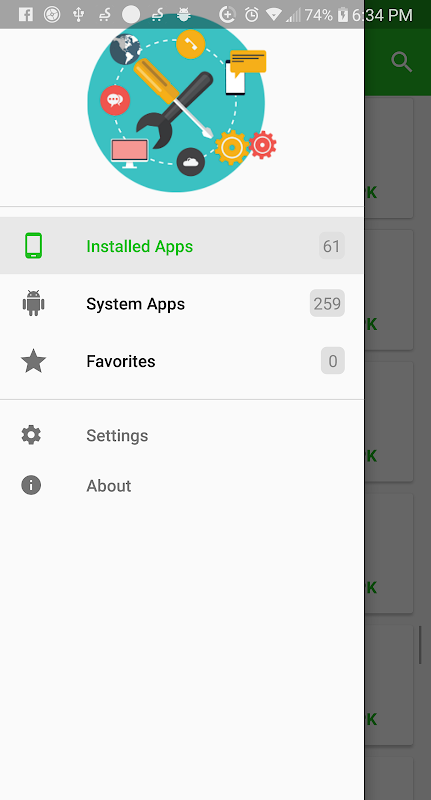 Compartir aplicaciones muestra sus aplicaciones con una lista, puede obtener un paquete de instalación directamente desde su memoria y enviarlo a sus amigos como un archivo adjunto.