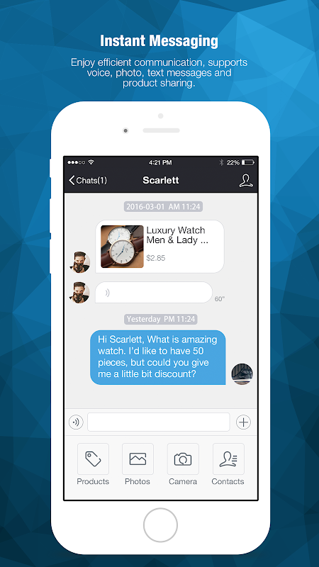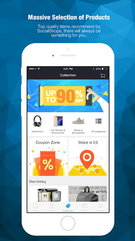 La aplicación de comunicación comercial Socialshops, desarrollada por Dhgate.com, es una plataforma móvil para que los comerciantes y los fabricantes al por mayor o al por menor lleven a cabo el intercambio de información comercial, la promoción de productos y las transacciones. Socialshops ofrece, tanto a los compradores como a los vendedores, funciones de comunicación y transacción muy útiles relacionadas con la información comercial y los productos, incluido el establecimiento de la tienda, la gestión de productos, las comunicaciones privadas sobre información comercial y la gestión de conexiones comerciales.