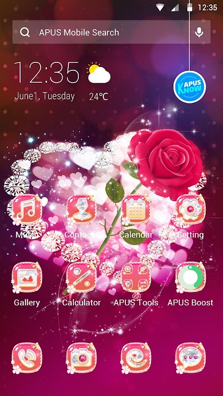 2. When you apply Shine Red Rose Love--APUS Launcher stylish theme with fantasy wallpaper, APUS Launcher will make your phone faster.