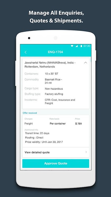 Shipwaves aplicación móvil ayuda a nuestros transportistas a estar en la cima de sus envíos. Ya se trate de mirar hacia arriba para una cita, o comprobar una actualización de envío o mapa visual de seguimiento de contenedores, todo en un solo lugar. Puede ver todos los documentos relacionados con el envío, facturas y detalles de pago en la aplicación móvil.