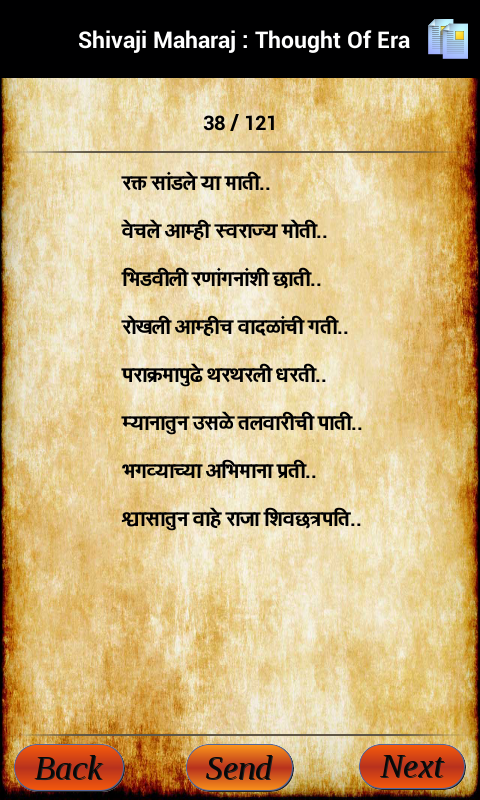 This app developed by VpMobisolution bring together the most ionic and conceptual quotes of Chhatrapati Shivaji Maharaj. It's quite simple to use and even non technical person can use this quote app easily.
