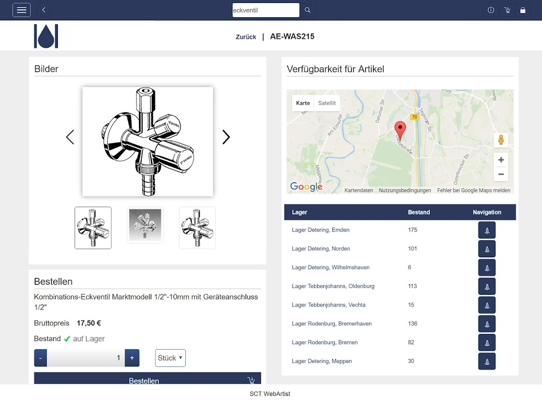 La aplicación SHK Detering combina búsquedas de productos, comprobaciones de disponibilidad y opciones de pedido en una sola aplicación.