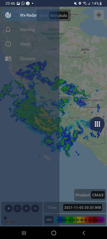 Sidarma (Sistema de integración de datos de radar meteorológico independiente) Mobile es una aplicación de teléfono inteligente para monitorear la distribución de las nubes de lluvia en tiempo casi real utilizando el radar meteorológico BMKG.
