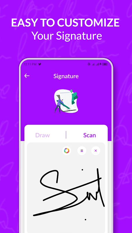Signature Maker: Signature Maker es una aplicación gratuita para hacer firmas manuales y escanear desde la cámara o la galería. Considero que el software Signature Maker y Signature Creator son bastante útiles para hacer una firma con mi nombre. La aplicación Electronic Signature & Signature Creator le permite diseñar firmas digitales de calidad profesional a su nombre.