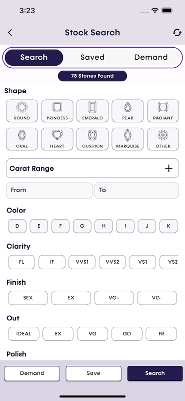 Descárguelo ahora para obtener acceso exclusivo a las mejores ofertas de diamantes. Explore, compare y compre una amplia gama de diamantes de calidad certificada al alcance de su mano. Acceda a una lista exclusiva de diamantes redondos y de formas elegantes a un precio con descuento. Todos los diamantes tienen certificación GIA, IGI o HRD.