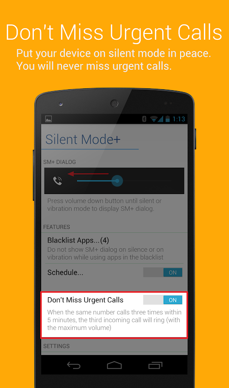 • Whitelist*: Calls from the important people will ring even if you are in silent/vibration mode