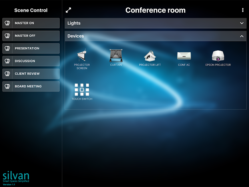 The Silvan Board Conference Room Automation android application lets you control all your appliances in conferences which includes Lights, AC’s, Television and Project lifts with our Silvan modules and Board application For configuring Silvan Board application you need download Silvan Config app for smooth integration process.