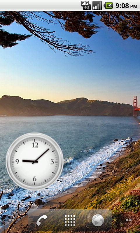 widget de reloj analógico simple. Al pulsar este widget permite ajustar el reloj de alarma