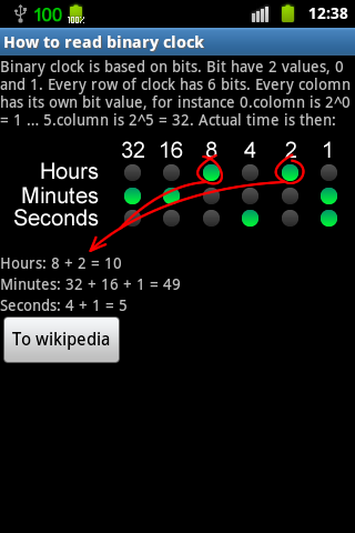 Simple Binary Clock is widget to your home screen. It shows time in binary form.