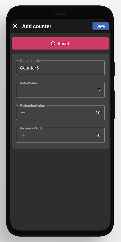 • Puede configurar el nombre del contador, el valor inicial, disminuir el valor y aumentar el valor.