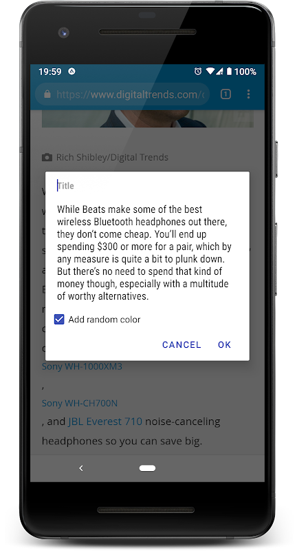 • Detector de enlace. Simple Notes puede detectar el enlace de enlace en la nota y agregarle una referencia rápida.