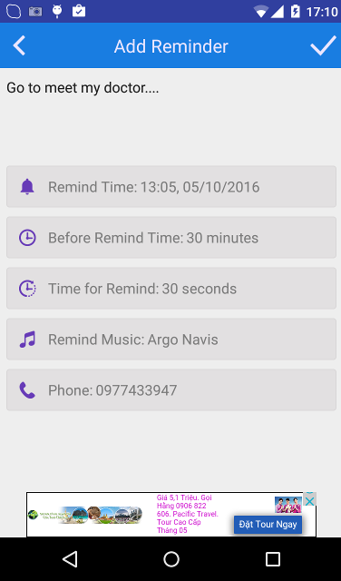 - Can set ToDo/Task Reminders, Birthday Reminders, Anniversary Reminders, Phone Call Reminders and Bills Reminders with just few clicks.