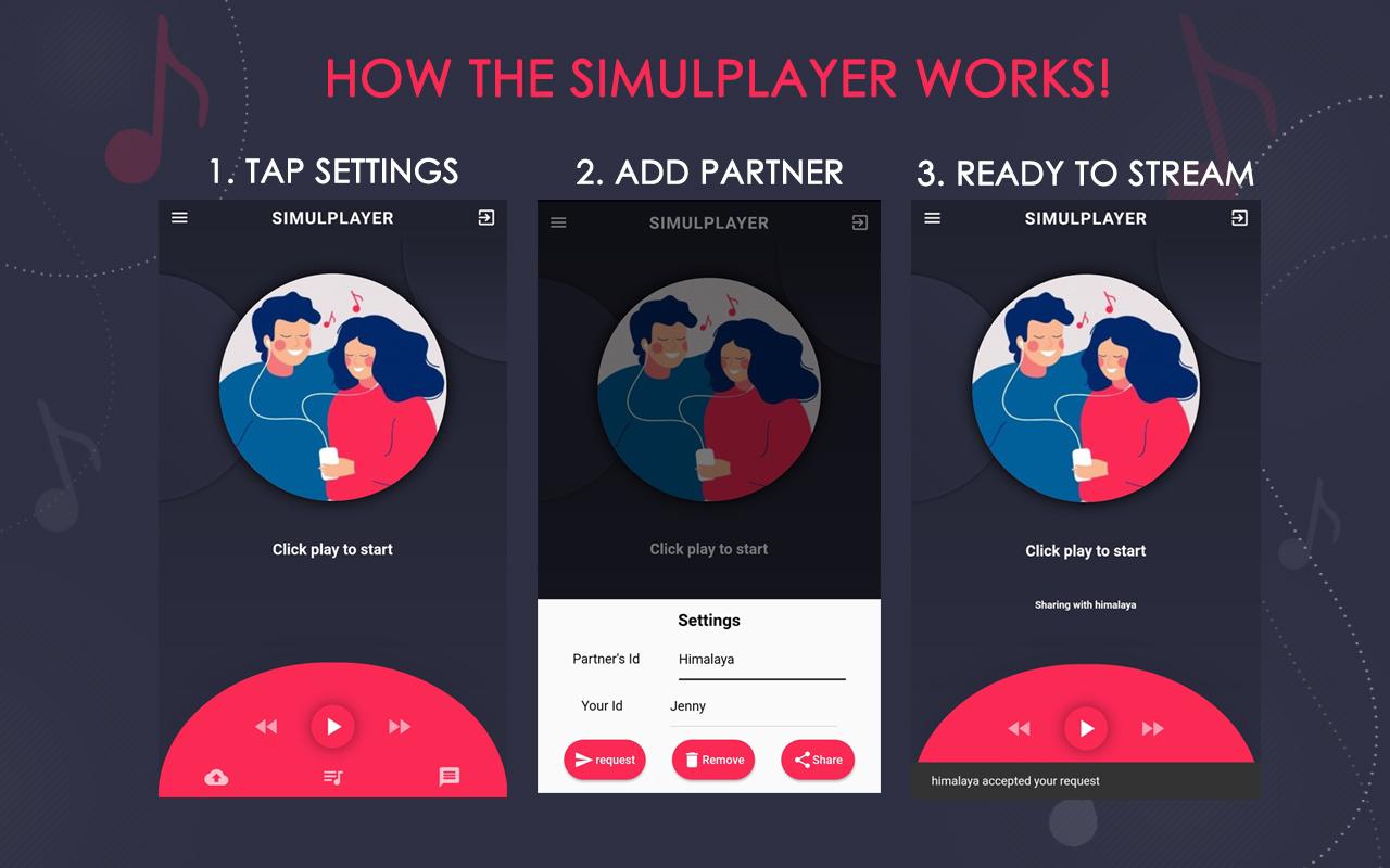 Simul player is an app to stream songs in realtime with your loved ones with the real-time chat option.