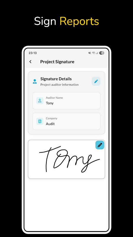 - Agregue el nombre de su empresa, los datos del auditor y su firma a los informes para un toque profesional.