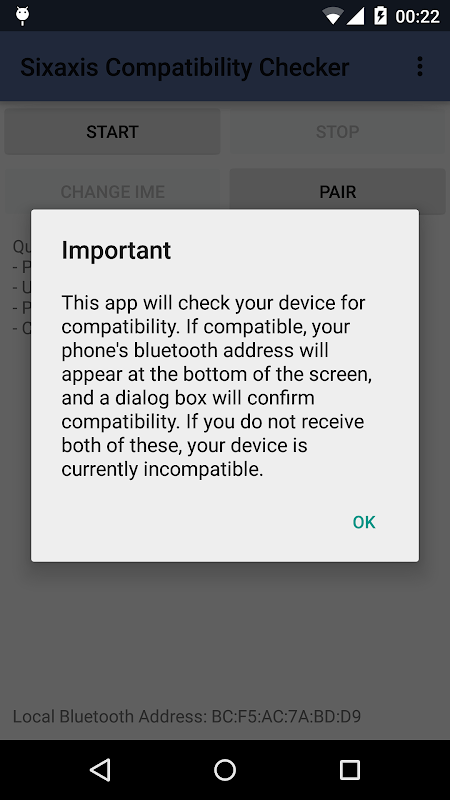 Esta es la aplicación que acompaña a controlador Sixaxis y que permite comprobar si el dispositivo es compatible con los siguientes controladores antes de adquirir la plena aplicación en Google Play: