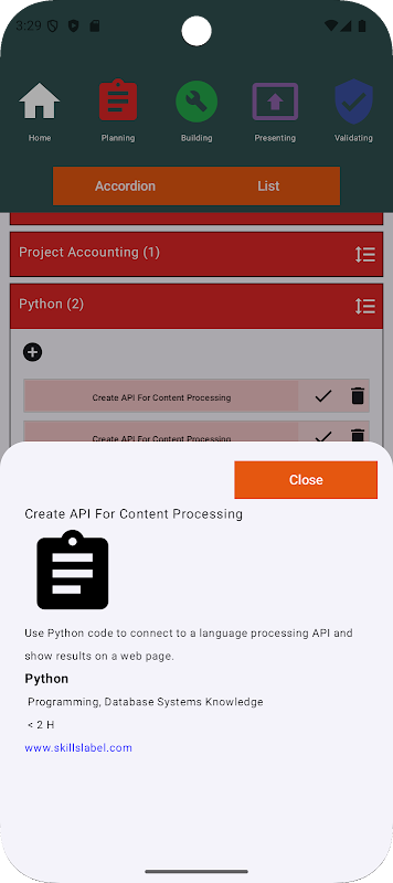 Actualmente, las aplicaciones funcionan con el mismo inicio de sesión y datos que Skills Label (aplicación de etiquetas de aprendizaje). Hay integración entre las dos plataformas. (Skills Label es un sistema patentado para administrar y rastrear habilidades. Incluye diez aplicaciones de Android establecidas).