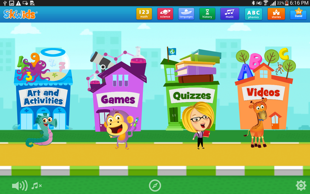 SkWids es un sistema de aprendizaje temprano basado en caracteres que enseña materias escolares.