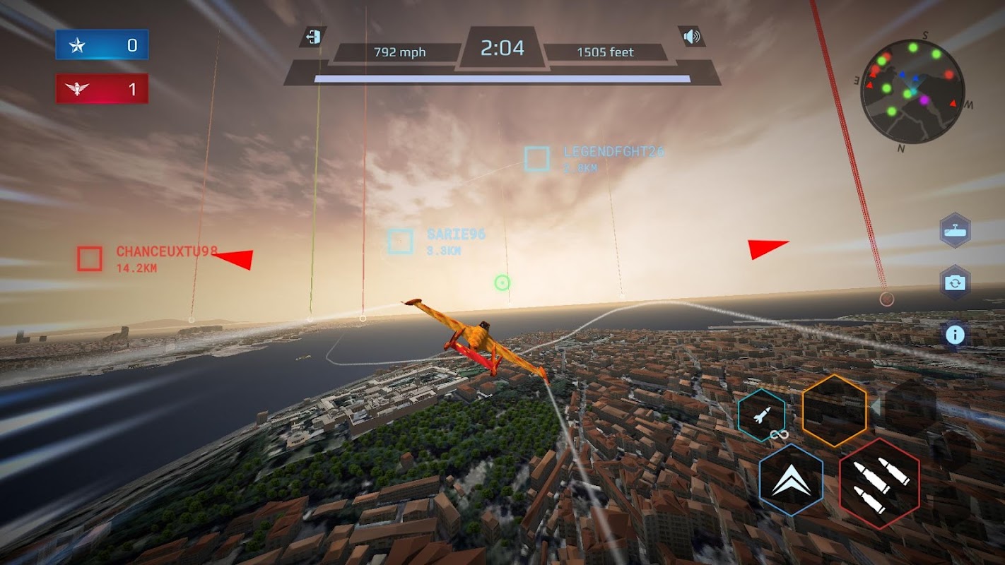 Mientras navegas por las calles y el cielo de la ciudad, deberás usar todas tus habilidades y estrategias para superar a tus oponentes y derrotarlos. Con controles de botones fáciles de usar, podrás volar tu avión de combate con precisión y exactitud, disparando ametralladoras y misiles para abrirte camino hacia la victoria.
