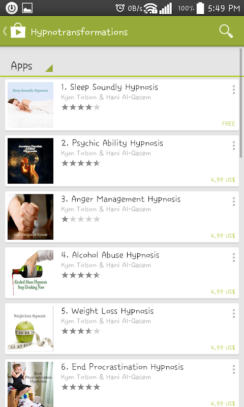 Esta aplicación cuenta con una extensa hipnosis Mini Store, que ofrece más de 75 sesiones de hipnosis!