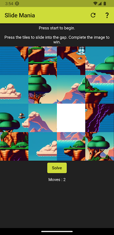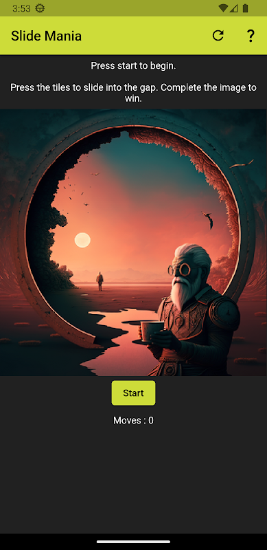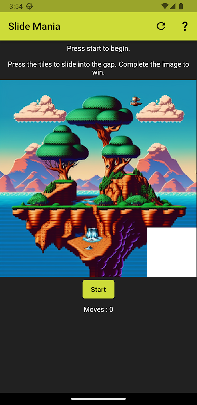 Presione comenzar para codificar la imagen aleatoria y deslice los mosaicos en el espacio hasta que complete la imagen.