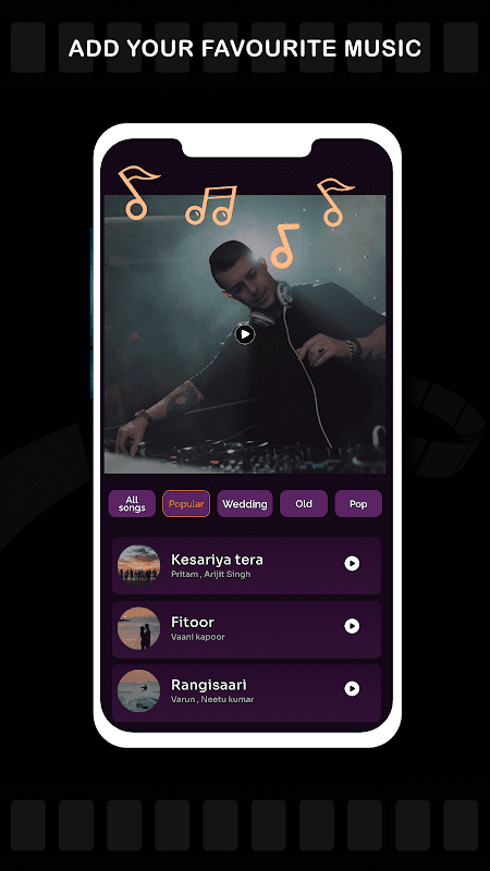 En el creador de presentaciones de diapositivas de video puedes agregar la música de fondo de tu biblioteca musical.
