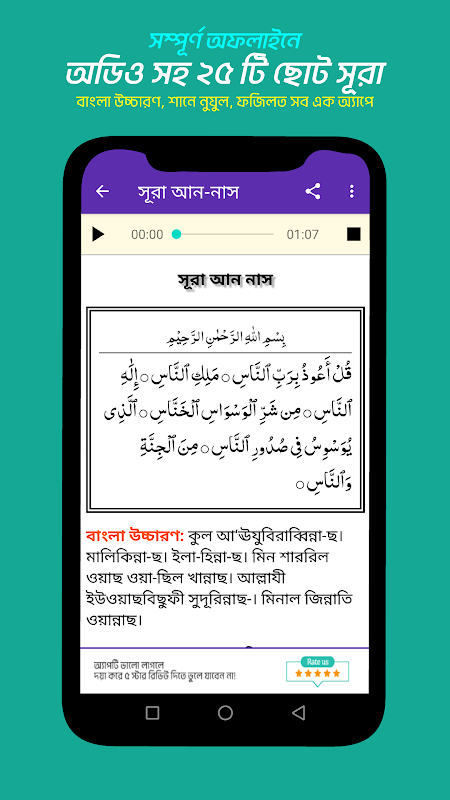 25 suras cortas: árabe, pronunciación bengalí, traducción, Shane Nuzul, mp3, ¡todo en una sola aplicación!