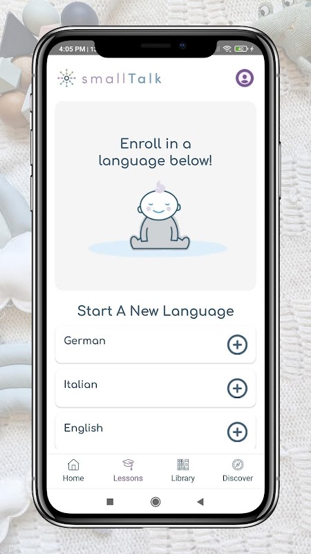 ¡Con smallTalk, presentarle idiomas extranjeros a tu bebé es sencillo y divertido! La aplicación combina actividades interesantes y nuestro contenido exclusivo hecho para bebés. Con nuestra aplicación gratuita, además de productos opcionales disponibles en nuestro sitio web, smallTalk tiene todo lo que necesita para impulsar el desarrollo cerebral de su bebé y su viaje de aprendizaje de idiomas.