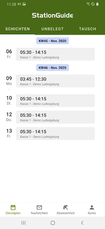 + Kommende Schichten einsehen
