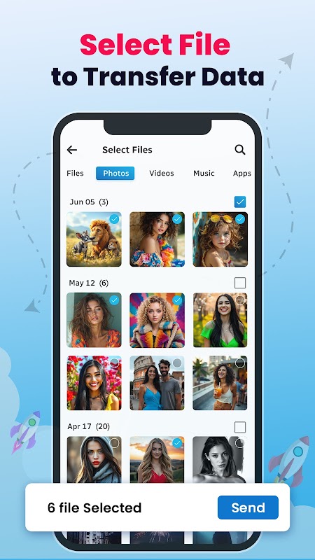 Smart data transfer (app pasar archivos) es la filetransfer de usar (enviar archivos) de easyshare, que permite transferir fácilmente archivos grandes como videos, fotos y música entre dispositivos móviles sin necesidad de internet. Diseñada para todas las marcas de móviles Android, la app Copiar datos ofrece una transferencia segura y sin complicaciones de datos a un nuevo móviles.