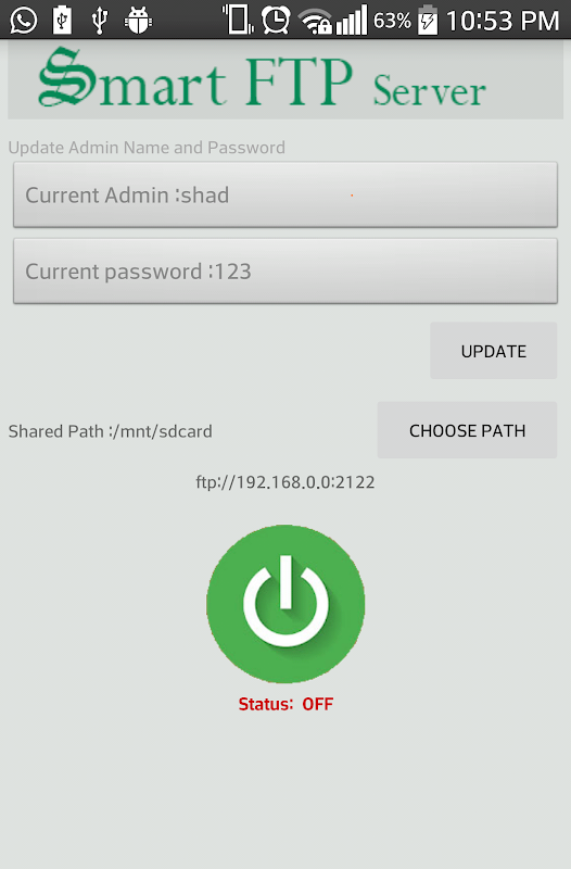 La aplicación Smart FTP Server está diseñada para convertir su Android en un servidor FTP para compartir sus datos móviles en cualquier dispositivo a través del protocolo FTP. El servidor Smart FTP le permitirá cambiar la contraseña del nombre de usuario y el directorio (Carpeta) para compartir.