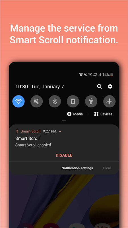 Habilite la opción de desplazamiento inteligente y active el servicio de accesibilidad de Desplazamiento inteligente.