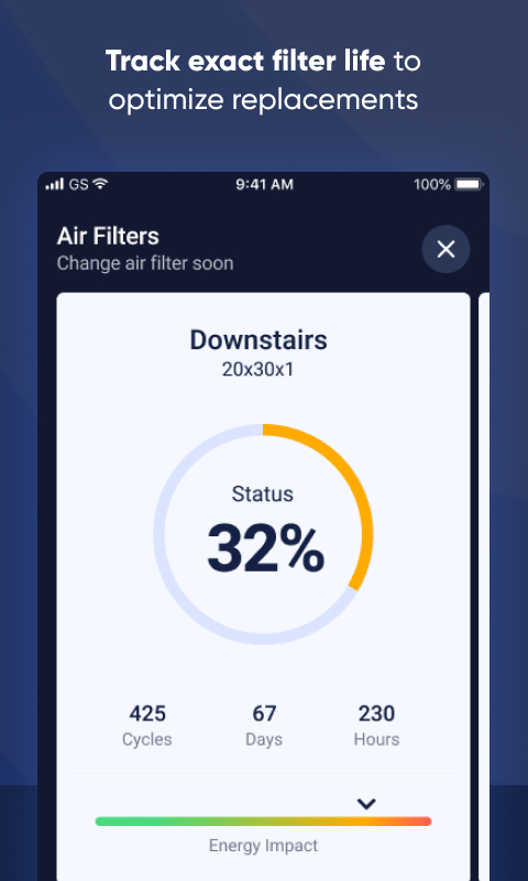 - Realice un seguimiento de la vida útil del filtro de aire para optimizar los reemplazos para ahorrar energía y mejorar la calidad del aire.