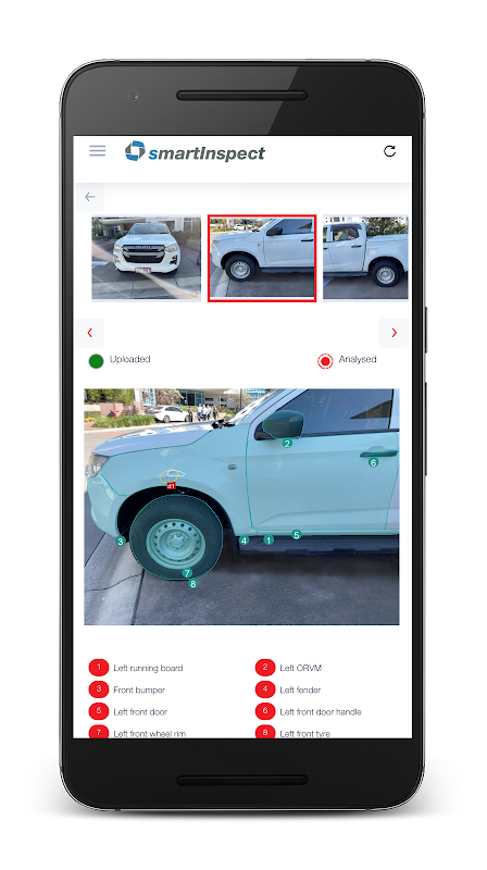 smartInspect utiliza un algoritmo avanzado para analizar imágenes en tiempo real. Identificar cualquier daño, desde rasguños menores hasta una abolladura importante.