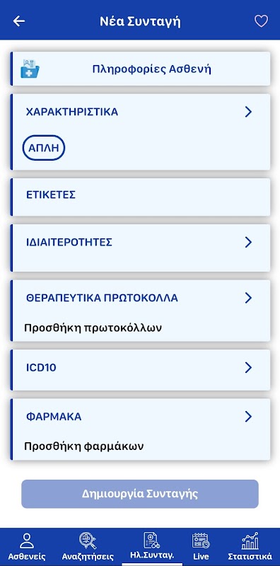 La aplicación, por supuesto, también es compatible con todas las funciones anteriores, tales como: archivo completo de cliente del paciente, pestaña completa del paciente, historial de visitas / entrada de visitas en e-DAPY / programación de visitas, recetas, referencias, medicamentos y comentarios sobre pacientes, Smart búsqueda, impresiones, información detallada en el archivo de medicamentos de IDIKA, así como el seguimiento "en vivo" de la actividad y las estadísticas agregadas de la prescripción de su práctica.