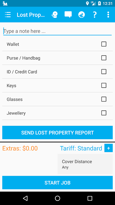 * Hardware controls: The app can record audio if the driver wants to leave a voice message for the operators