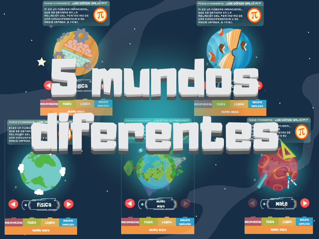 SmartOne cuenta con 5 mundos de mente!!!; ¡Matemática, Física, Historia científica y el audaz mundo de la Lógica también, considerando que como mundo bonus está el Mundo maya, propio de cultura guatemalteca! ¡Ahora sí, a descubrir!!!