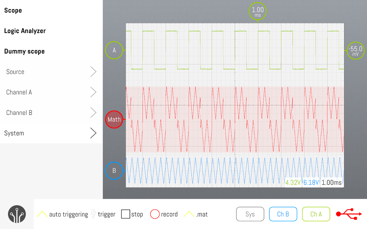 En combinación con el LabNation SmartScope, esta aplicación convierte tu tableta en un generador de osciloscopio / forma de onda móvil.