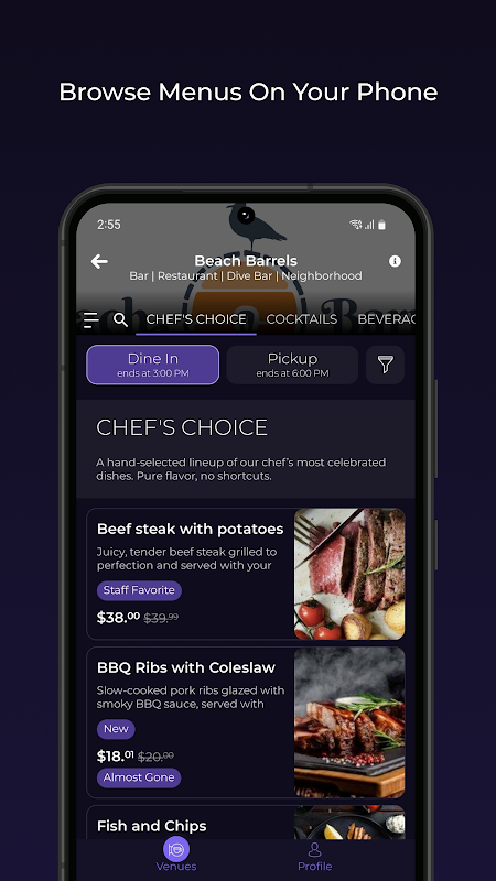 Descargue la aplicación SmartTab y regístrese para ver las ubicaciones participantes y descubra qué alimentos y bebidas en el menú están en tendencia actualmente y cuando visite, vea su pestaña en tiempo real en su teléfono móvil y tome el control de su salida nocturna.